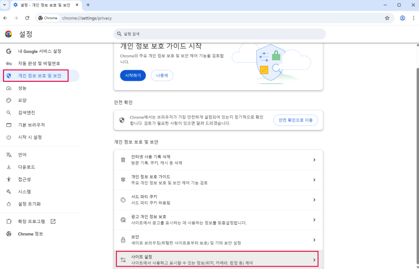 2. 크롬 141 버전 업데이트 후, 이미 [차단]을 선택한 경우